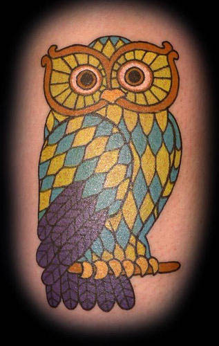 Owl tattoo many of the signs of a great advantage for mental energy. Owl with a halo color depth, or the third eye is not a piece is not uncommon. Another example of this is a luxury development of brown and white owl in the form of bright red, green and yellow tarot card. Some people also mix them with the astrological sign of an owl, or even place it into a heavenly body. You can do this by creating a map of the stars speckled bird, or placed so bright, and rouse the picture of the moon in the face of an owl.For some people, the beauty of a unique owl enough. For these people, there can be no image of the pattern of art. As these birds can be seen sitting peacefully on a branch, or - more unusually - in flight. There are also several different types of owl, which can be used, and is often seen is the Great Horned Owl, which is generally brown, with patches of white and gray. Another Snowy Owl, which is striking in a coat of pure white feathers. Less often seen, but equally impressive is the elf owl, which is almost blue, gray or slate color. All these birds have a common feature, large round, golden eyes and penetrate, which is almost always played, even in tattoo art.
